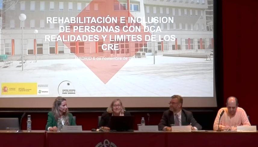 La directora del Ceadac intervino en el Simposio «Centros de Referencia para la Inclusión de Personas con Daño Cerebral. Oportunidades y Retos» con una ponencia sobre Rehabilitación e inclusión de personas con Daño Cerebral Adquirido. Realidades y límites desde los centros de referencia estatal. En este simposio también participaron los directores del Ceapat, Miguel Ángel Valero Duboy, y del CRE de Discapacidad y Dependencia, Mª Teresa Gutiérrez Fuentes.