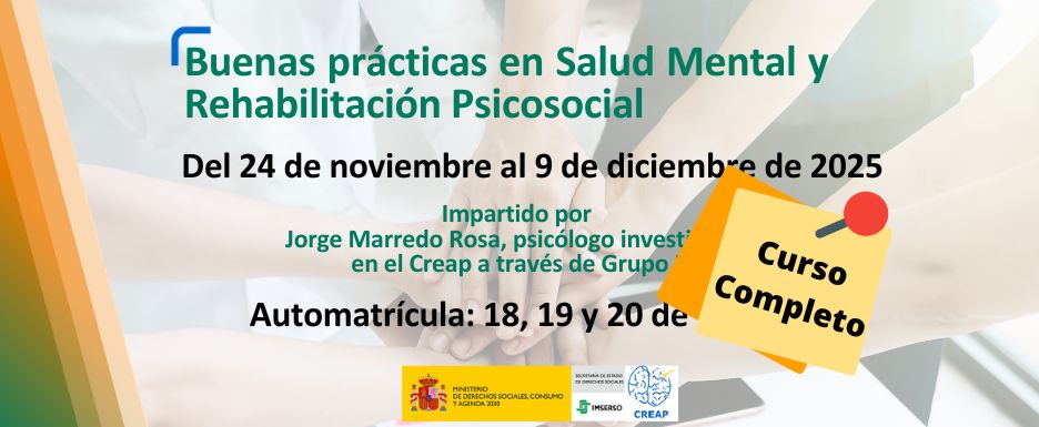 • El Creap del Imserso en Valencia, pone en marcha el curso online para «Buenas prácticas en Salud Mental y Rehabilitación Psicosocial».
